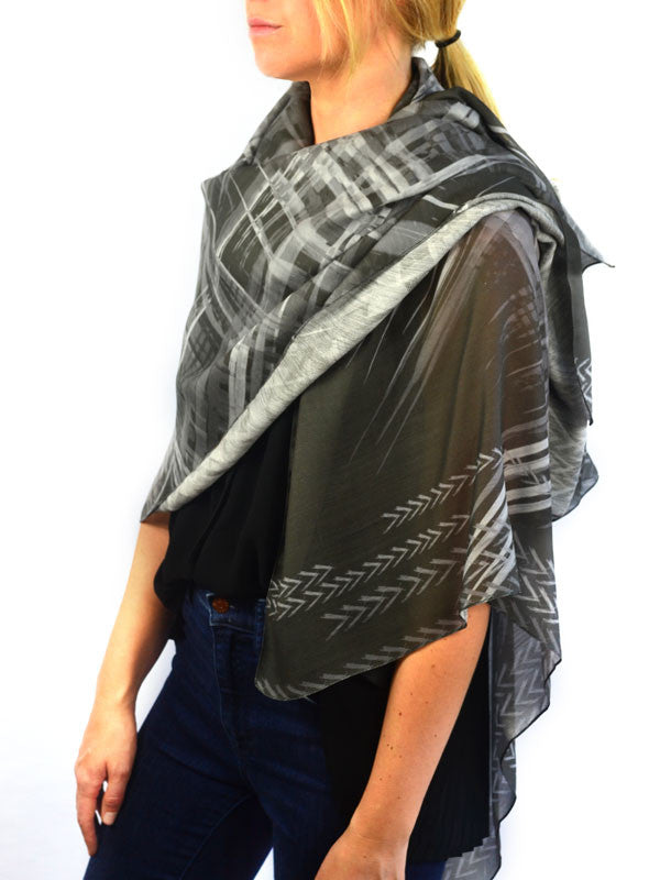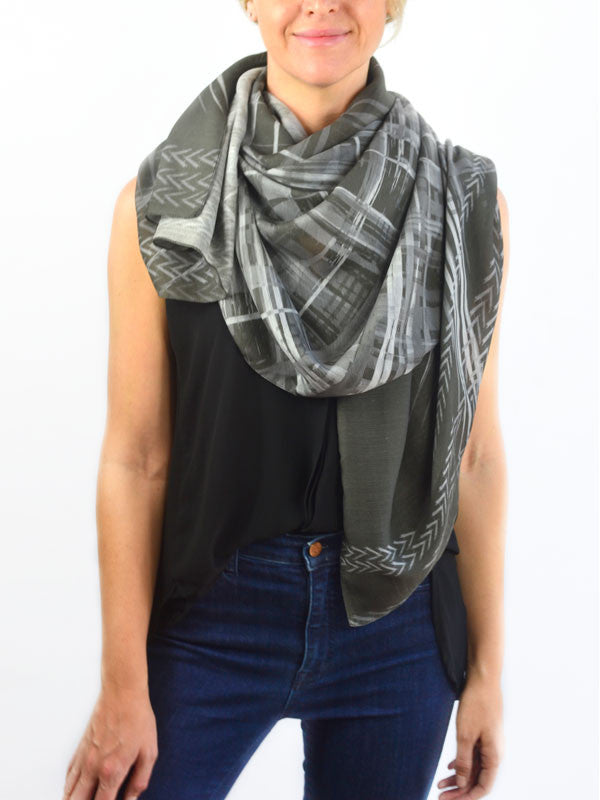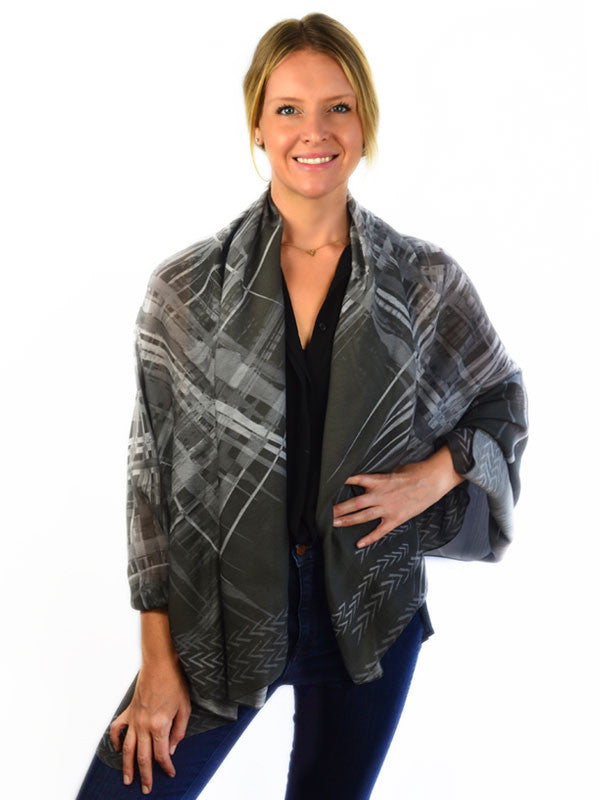 This wrap is made up of several tones of grey that form a gorgeous plaid. This neutral scarf is the perfect accessory to add to a bright outfit to add depth to your outfit. Paid this scarf with bright colors or wear it alongside bold, vibrant colors.