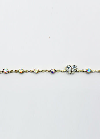 Delicate, dreamy, and effortlessly elegant this gold-plated bracelet adds just the right touch of sparkle to your everyday style. A dainty heart charm sits at its center, symbolizing love and light, while iridescent studs shimmer beautifully as they catch the light. Each stud is thoughtfully spaced along a fine gold chain, creating a balanced design that feels both modern and timeless.