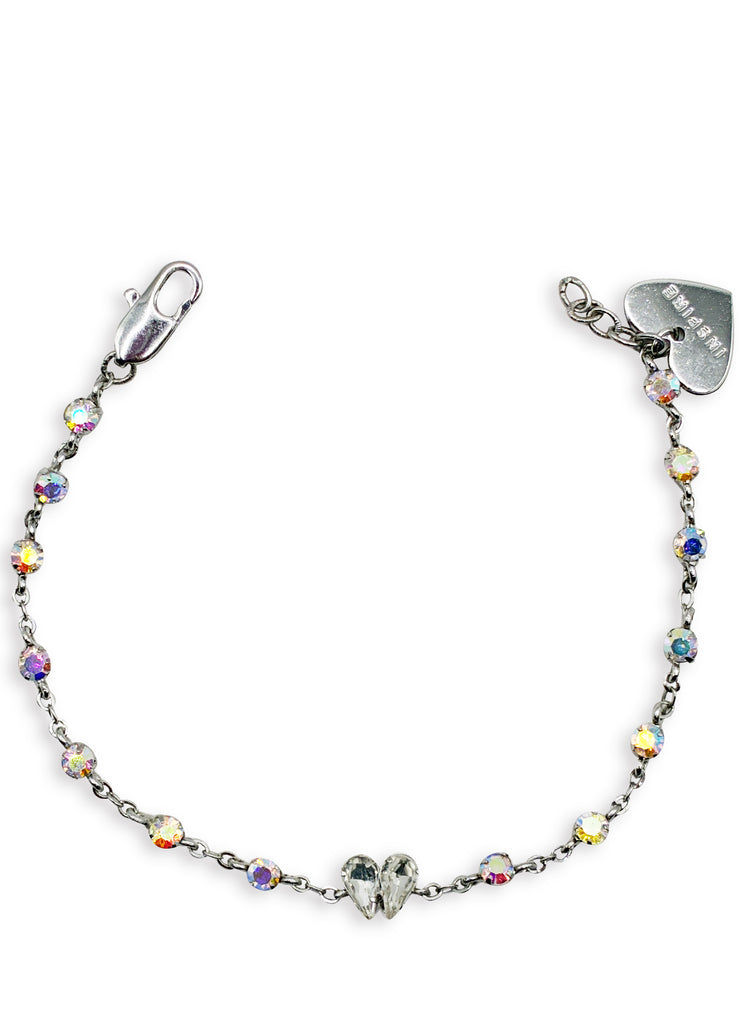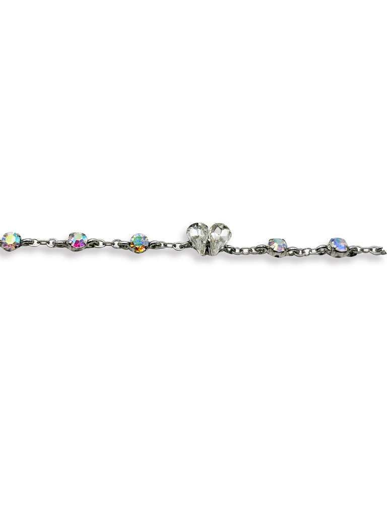 Delicate, dreamy, and effortlessly elegant this silver plated bracelet adds just the right touch of sparkle to your everyday style. A dainty heart charm sits at its center, symbolizing love and light, while iridescent studs shimmer beautifully as they catch the light. Each stud is thoughtfully spaced along a fine gold chain, creating a balanced design that feels both modern and timeless.